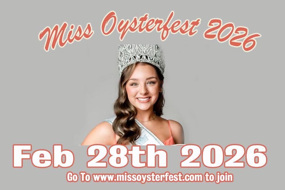 The young lady selected as Miss Oysterfest will receive a $1,000 scholarship that is awarded at the completion of her reign.